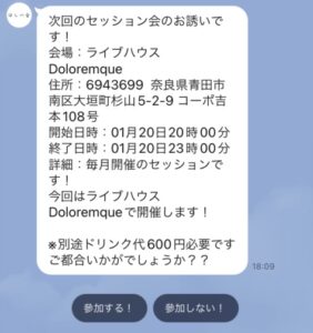 イベントの日時は公式LINE、メンバー用ページから確認できます。次のイベントを確認する